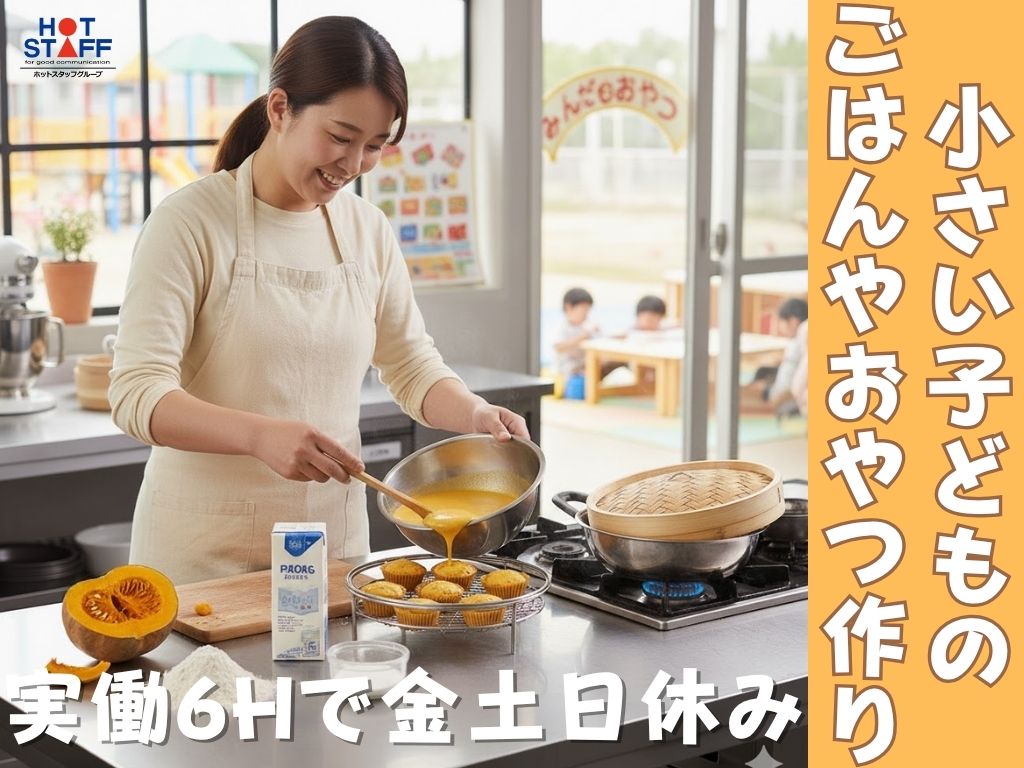 キレイな職場で0~2歳のごはんやおやつ作り★ \ 実働6Hで金土日休み /