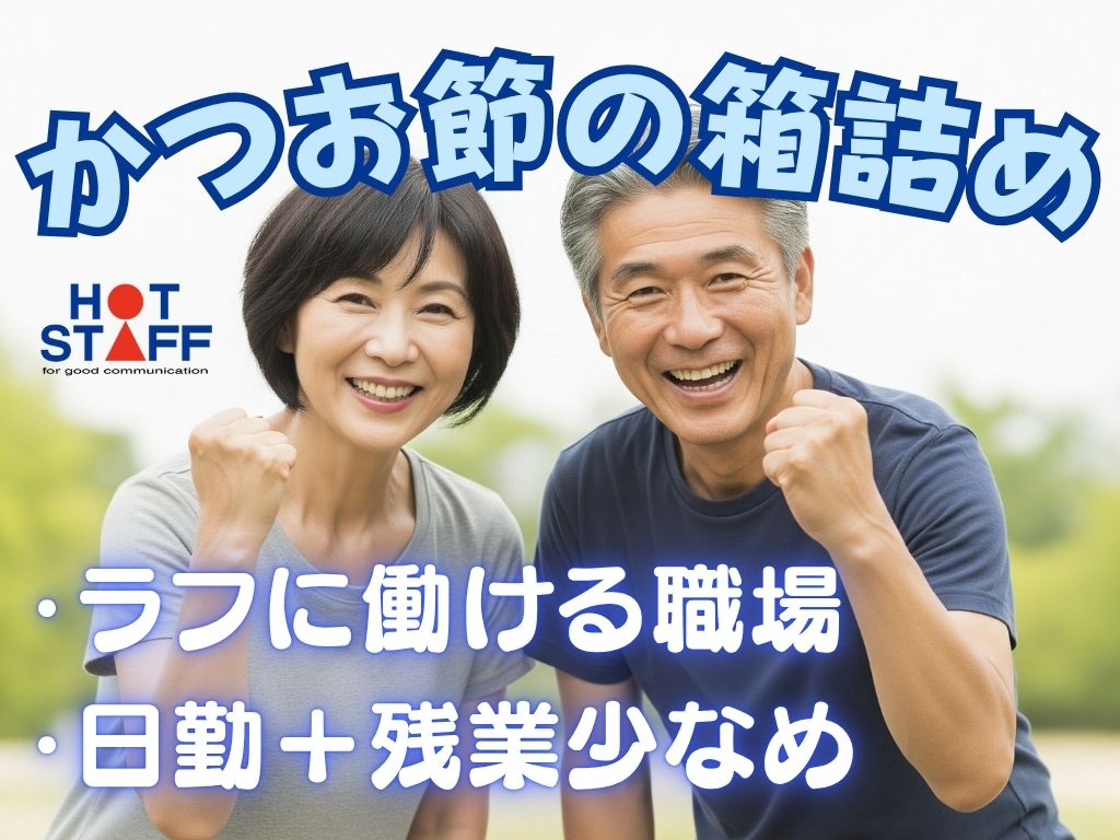 《ラフに働ける職場・かつお節の箱詰め》未経験OK/日勤専属+残業少なめ/プライベート充実♪