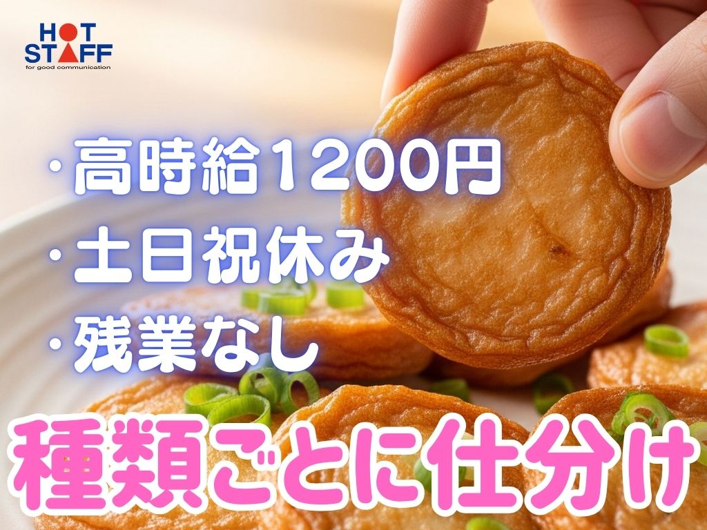 《簡単なのに高時給・練り物を種類ごとに仕分け》残業なし/プライベート充実/快適な職場♪