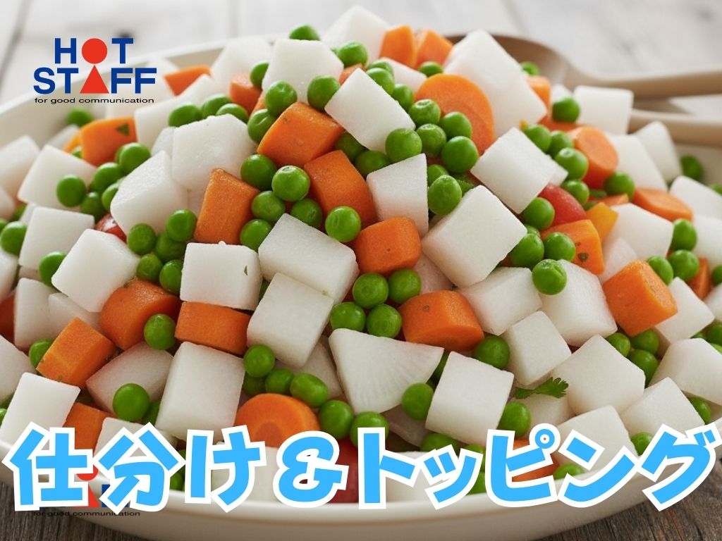 《未経験OK・カットされた野菜の仕分け&トッピング》残業少なめ/働きやすい環境あり/制服すべて貸与