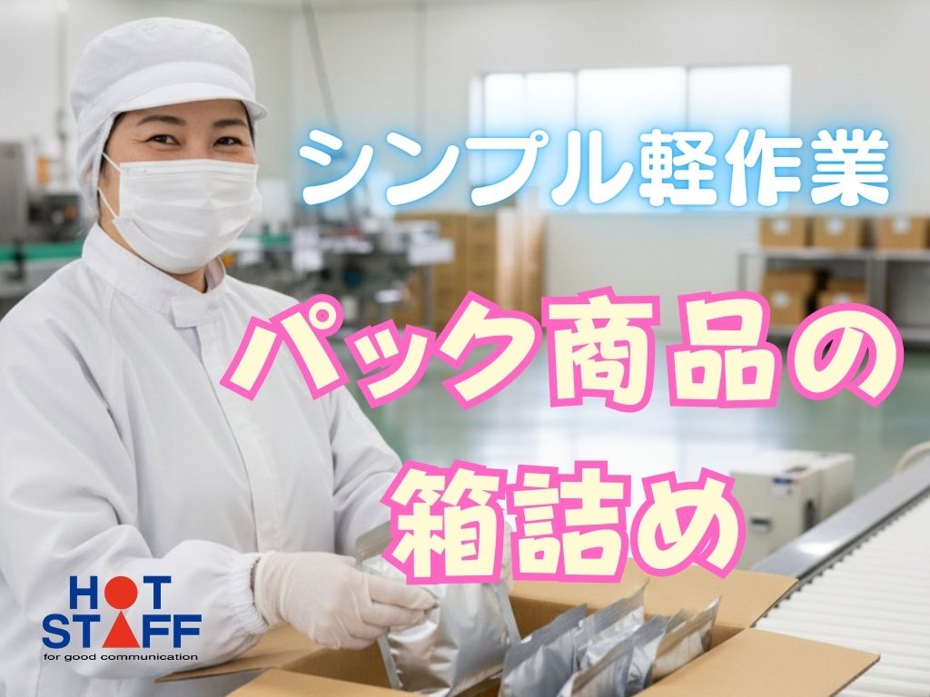 《空調完備で快適・ウズラの卵を使った加工商品の箱詰め》シンプル軽作業/平日休みあり/残業なし