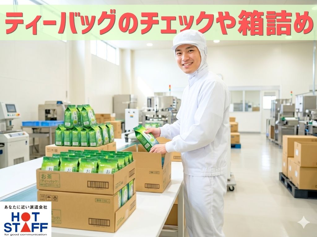 《未経験歓迎◎ティーバッグのチェックや箱詰め》土日祝休み/時間が選べる/日勤・夜勤