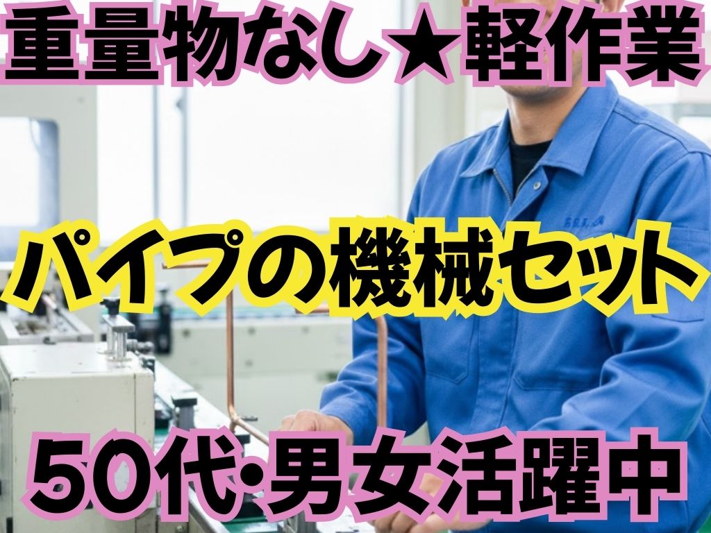 【8:00~17:00・土日祝休み】年間休日128日あり・ネイルOK・髪色自由・重量物なし・パイプの機械セット