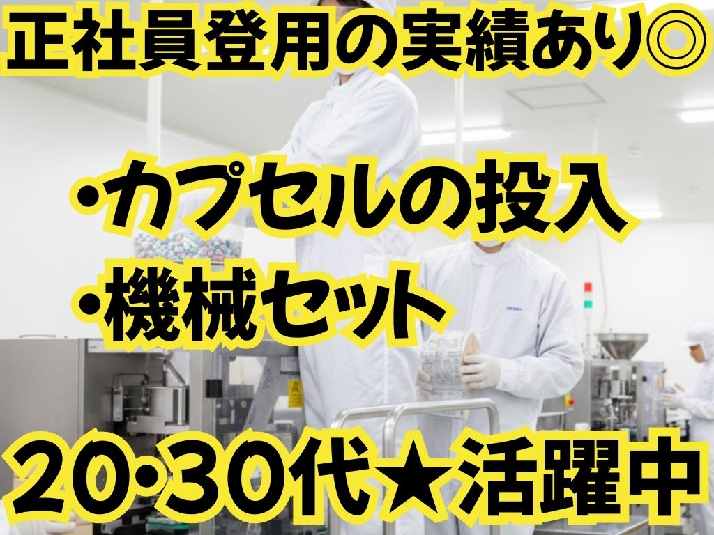時給1500円・月収27万円以上も目指せる・すぐに入社可能・ソフトカプセルの乾燥機のオペレーター