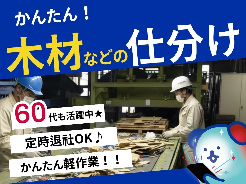 4H~の短時間の相談可◎ " 木材やプラスチックの仕分けスタッフ " 定時退社OK・かんたん軽作業!