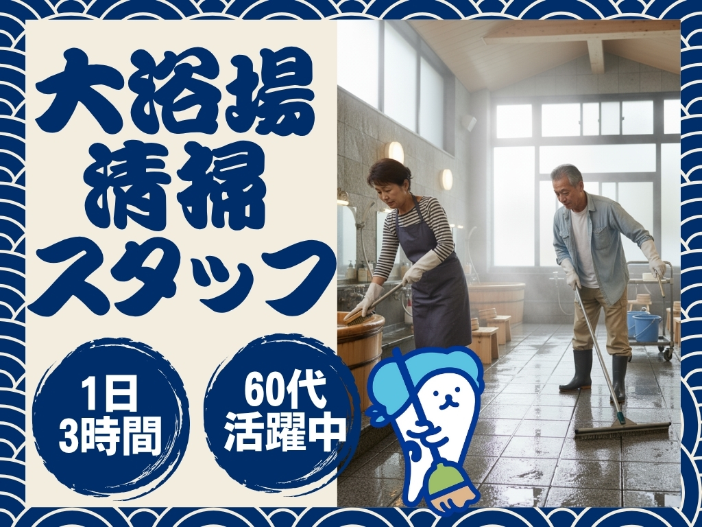 熱海市/1日3時間勤務 × 週休3~4日/最寄り駅徒歩4分/未経験OK!大浴場の清掃