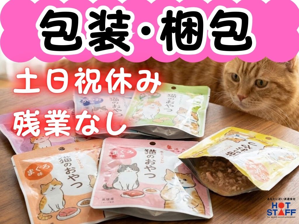 8:30~17:30/完全土日祝休み/残業なし/髪色自由《猫のおやつをチェックして包装・梱包♪》
