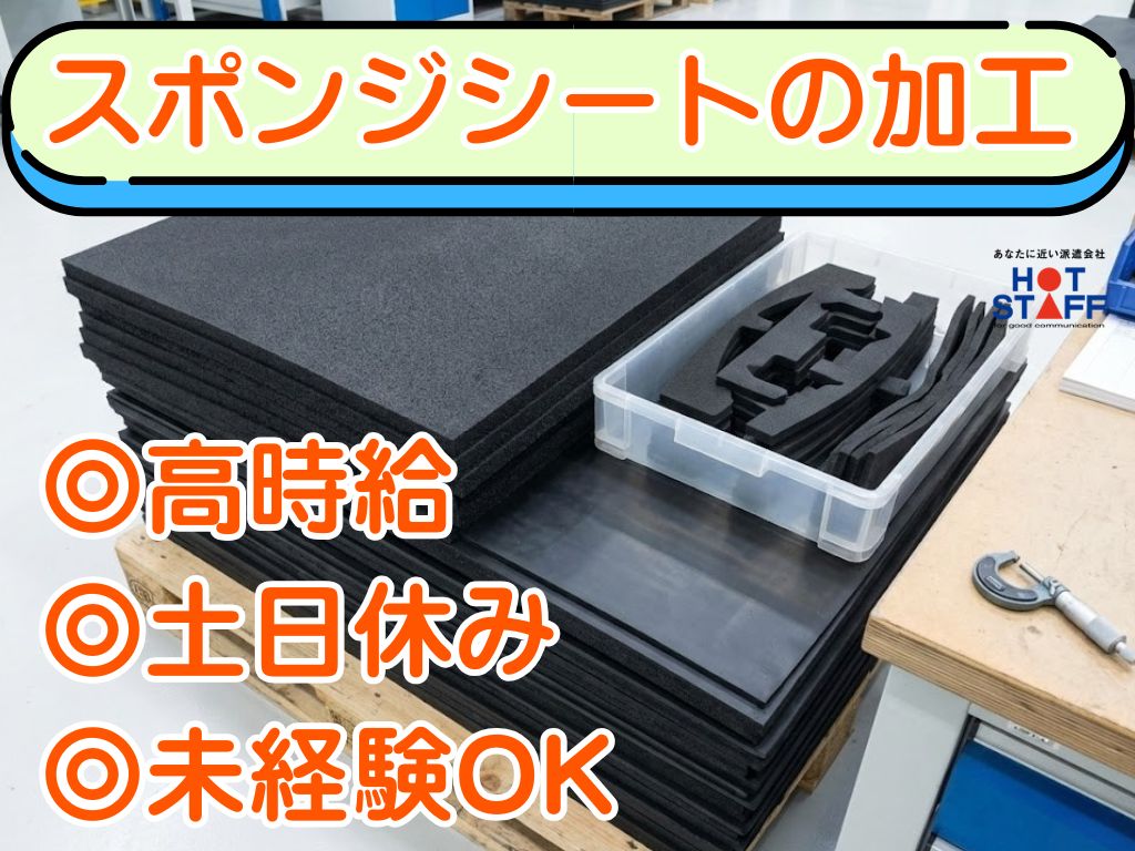 完全土日休み/残業なし/未経験OK/人間関係◎《自動車用のスポンジシートを加工+チェック》