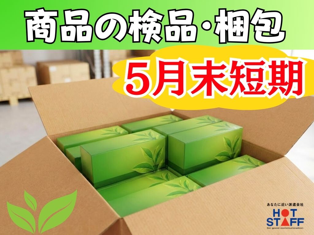 8:00~16:30/5月末までの短期バイト/残業なし/未経験OK《お茶パックの箱詰め・チェック◎》