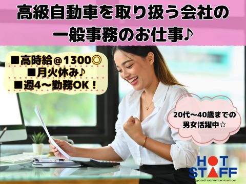 高時給@1300/月火休み/週4~勤務OK!/高級自動車を取り扱う会社の一般事務