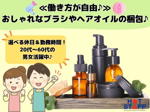 ≪働き方が自由♪≫選べる休日&勤務時間!おしゃれなブラシやヘアオイルの梱包