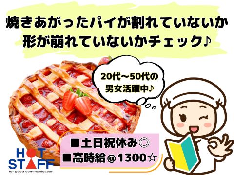 土日祝休み◎/高時給@1300/焼きあがったパイが割れていないか形が崩れていないかチェック