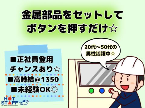 正社員登用チャンスあり/高時給@1350/未経験OK/金属部品をセットしてボタンを押すだけ