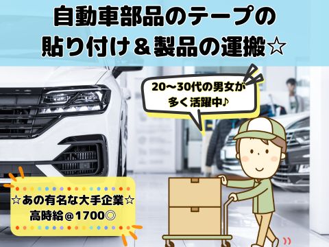 【あの有名な大手企業☆高時給@1700◎】自動車部品のテープの貼り付け・製品の運搬