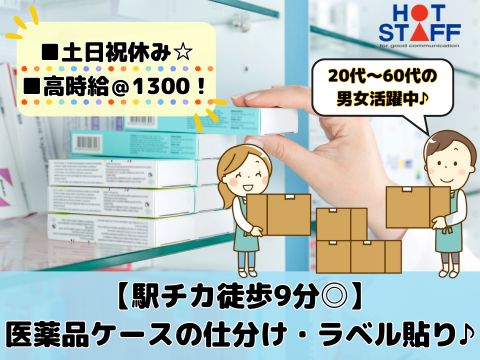 【駅チカ徒歩9分◎】土日祝休み/高時給1300◎/医薬品ケースの仕分け・ラベル貼り