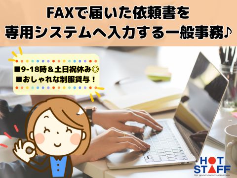 【9-18時&土日祝休み◎】おしゃれな制服貸与!FAXで届いた依頼書を専用システムへ入力する一般事務