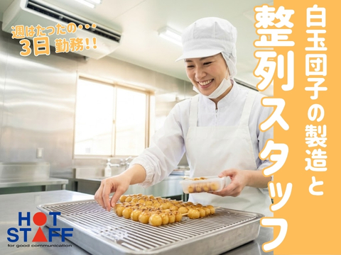 【串に刺さった団子をラックに並べるオシゴト】1日5.5時間/週3日勤務/早朝・お昼で出勤時間選択OK