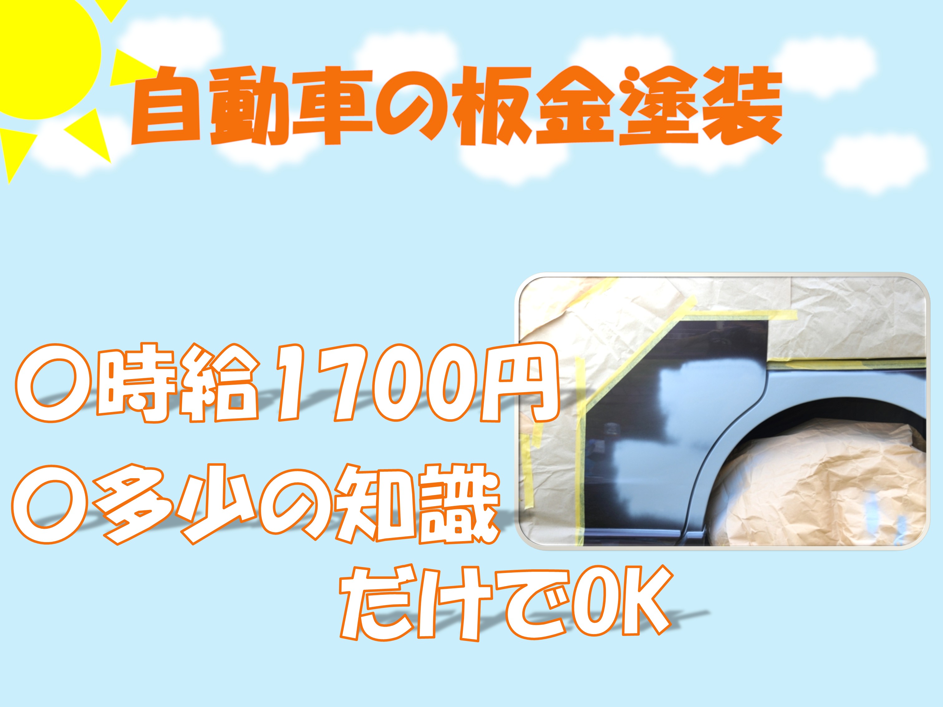 【高時給★1700円/8:30~17:30】未経験歓迎★自動車の板金塗装や部品交換のお仕事!