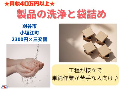 <臨機応変な対応が求められます◎>洗浄・パッキングのお仕事/高時給2300円・三交替・月収40万円以上可