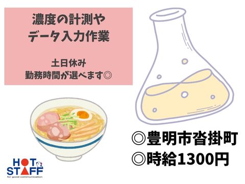 【開始時間が選べます☆】食品のカンタン検査!濃度を測る理科の実験のようなお仕事☆日勤のみ