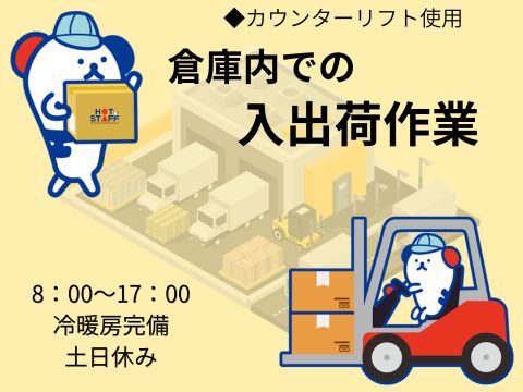 『リフトと手作業がしたい方☆』製品の入出荷作業・かんばん整理/日勤のみで生活リズムも安定♪