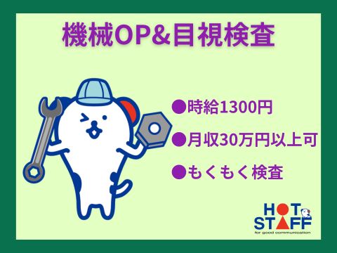 <二交替で月収30万円以上可◎> 金属部品のもくもく検査のオシゴト/時給1300円・土日休み
