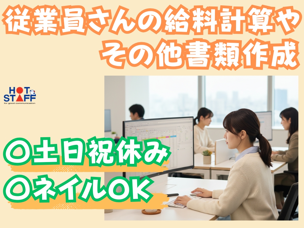 《システムで従業員さんの給与計算およびその他付随業務♪》土日祝休み/オフィスカジュアル/ネイルOK
