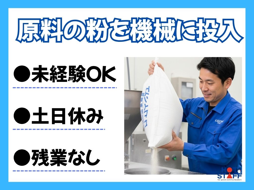 《粉末を機械に投入・成型後の部品を箱に入れるだけ》8:30~17:30/土日休み/未経験OK/残業なし♪