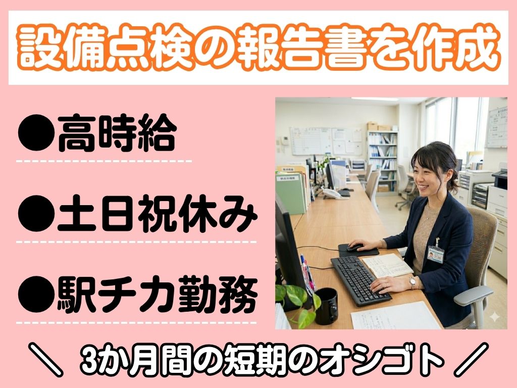 《3か月の短期・病院内の設備点検後の報告書を作成♪》13時~22時/土日祝休み/駅チカ/電話対応なし◎