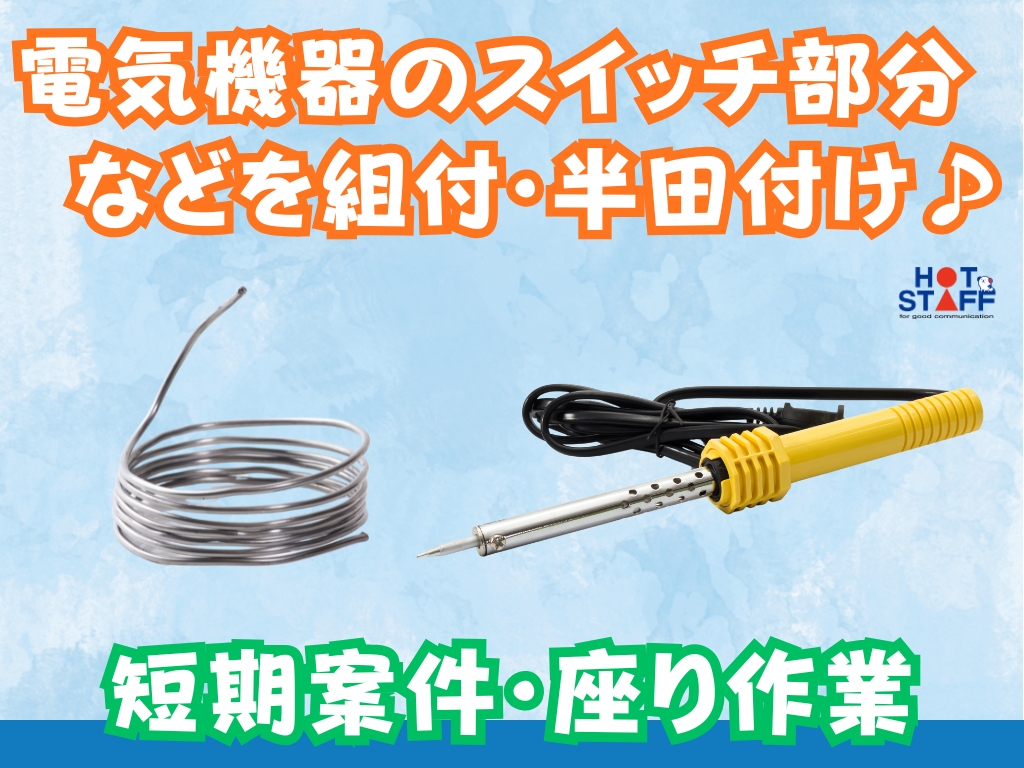 《電気機器のスイッチやセンサー部分の部品を組付・半田付け♪》2ヶ月間の短期/座り作業/土日休み