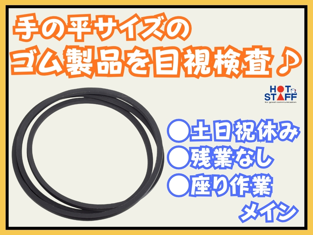 《輪っか型のゴム製品にキズがないか目視検査》座り作業メイン/土日祝休み/残業なし/軽作業/未経験OK