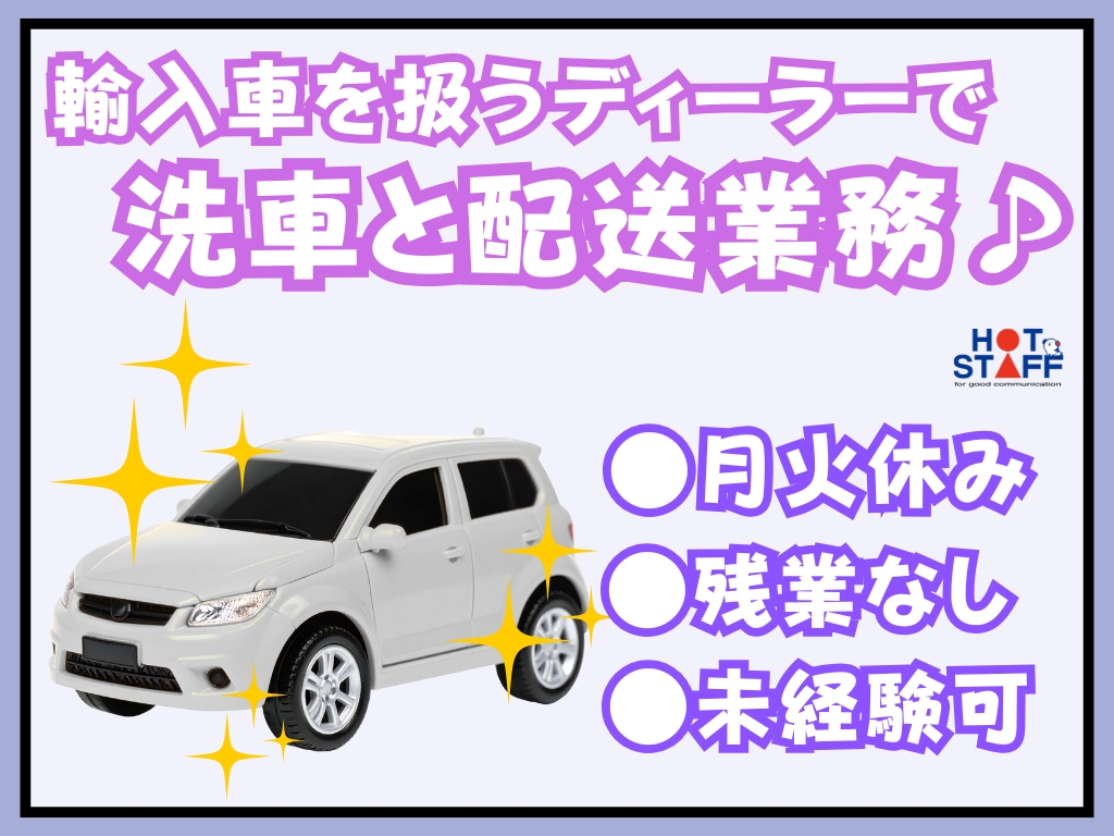 《カーディラーで洗車と配送業務♪》月火休み/未経験OK/残業なし/車の免許必須/モクモク作業
