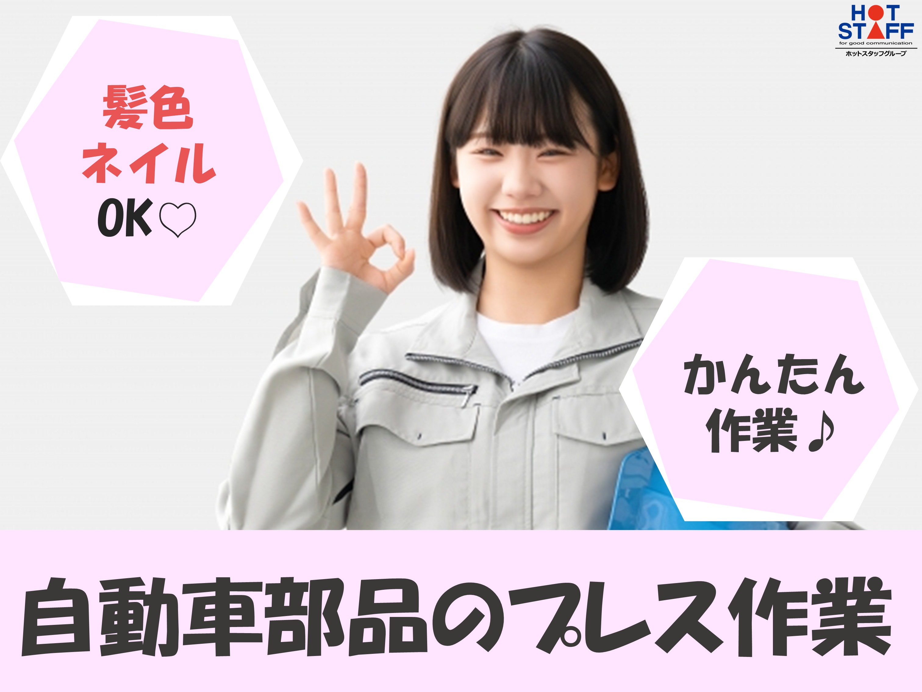 【自動車部品のプレス作業】時給1,500円/日勤のみ/空調完備/未経験歓迎/髪色ネイルOK