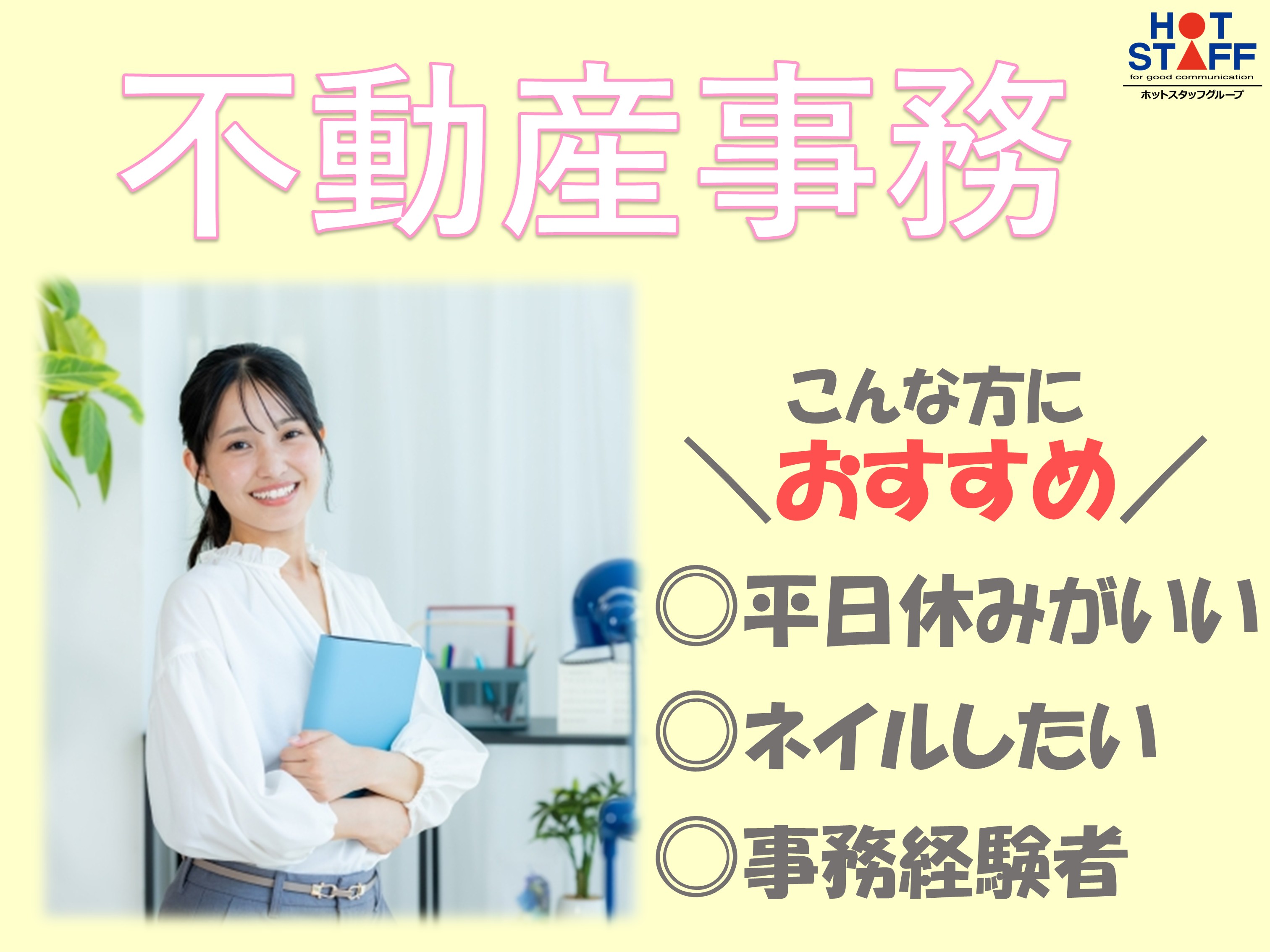 【不動産会社での事務業務】9:00~18:00/シフト制/ネイルピアスOK/空調完備/職場環境◎