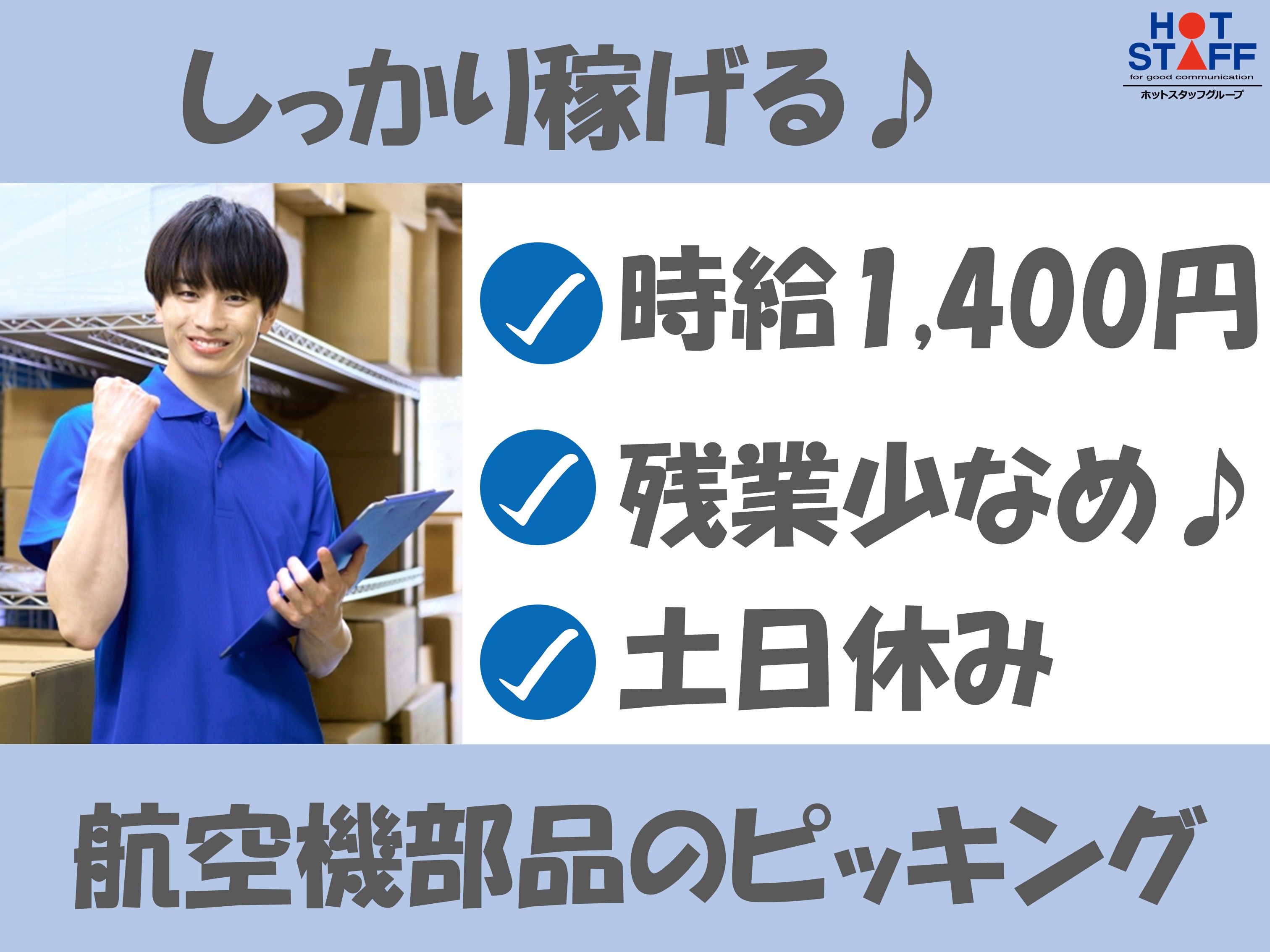 【航空機部品の入出庫・ピッキング業務】かんたん軽作業◎/高時給/土日休み/日勤のみ/未経験者歓迎!