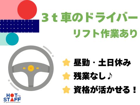3トン車のドライバー作業員★<日勤・土日休み>廃棄物を回収して運ぶだけ♪リフト作業あり!