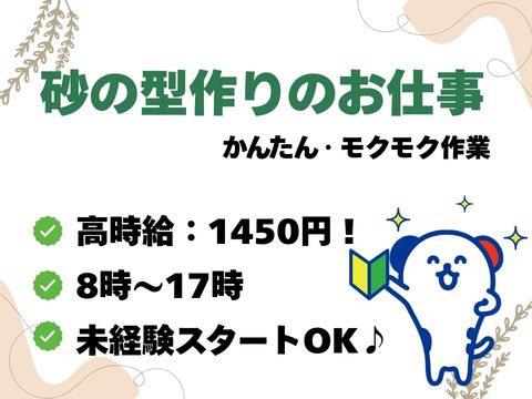 無心になれるモクモク作業★<昼勤>・土日休み>/砂を型に入れてギュッ!と固めるだけ♪