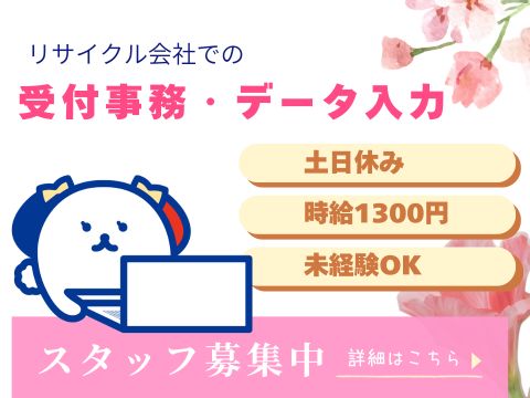 リサイクル会社の受付事務スタッフ★<日勤・土日休み・残業なし>/オシャレ自由☆未経験者OK♪