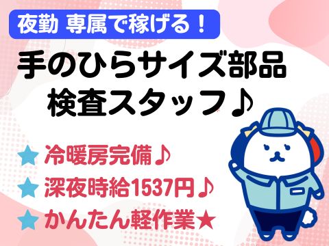 <夜勤専属!>\深夜時給1537円で効率よく稼ぐッ!/自分専用の机でモクモク検品♪空調完備で快適☆