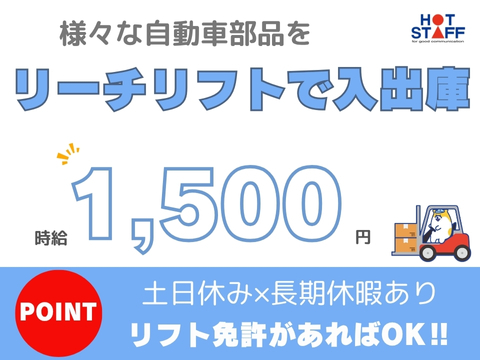 リフト未経験歓迎◎/日勤専属×長期連休あり/1人でモクモク作業/自動車部品をリーチリフトで入出庫作業