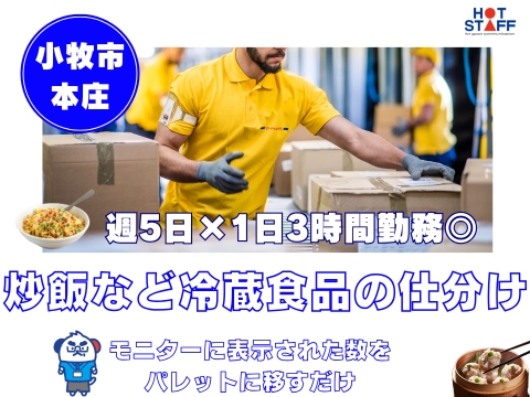 週5日勤務×1日3時間◎/単純作業探してませんか?/自動倉庫内で炒飯やシュウマイを仕分けるだけ