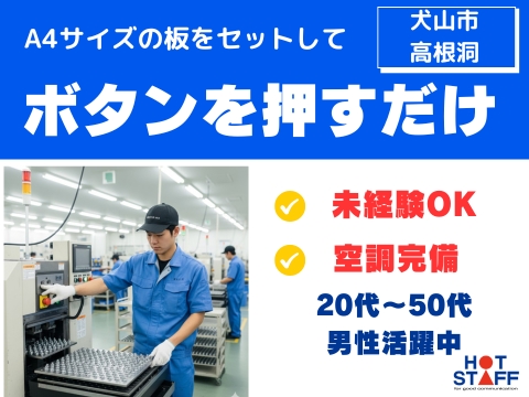 同じことの繰り返し作業/空調完備/土日休み/A4サイズの板を機械にのせてボタンを押すだけ!