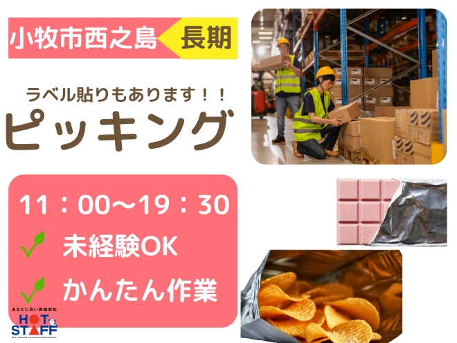 就業開始時間11:00~◎/未経験者歓迎!!/コンビニ商品のお菓子のピッキング・仕分け・ラベル貼りをお願いします