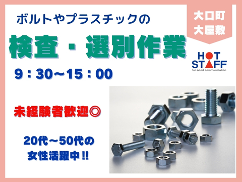 1日実働4.5時間!!/短時間のお仕事!/ボルトやプラスチックの検査をして選別をするだけ