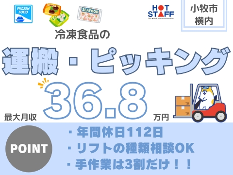 残業なし/時給1600円!!/冷凍食品をリーチリフトで運搬/リフトはほぼ乗りっぱなしです◎