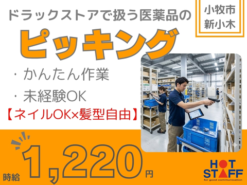 【週3日~勤務OK】ドラックストアで扱う医薬品を棚から集めて・シール貼り/週休3~4日制