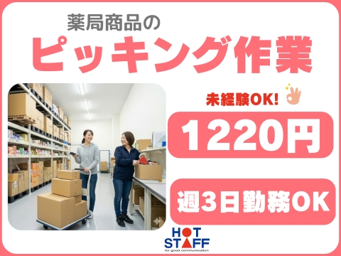 【週3日~勤務OK】ドラックストアで扱う医薬品を棚から集めて・シール貼り/週休3~4日制
