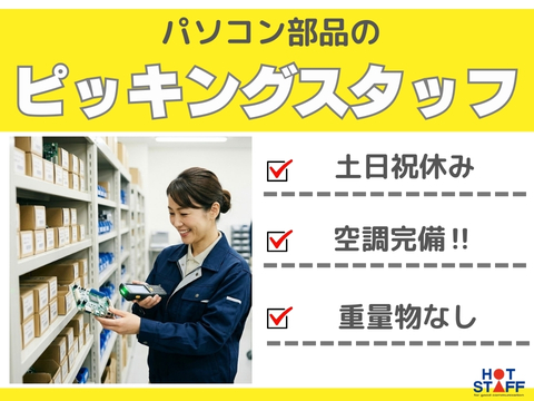 《PC部品を棚から集めて作業者へお届けする作業》空調完備/完全土日祝休み/重量物なし/長期連休あり