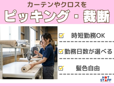 《カーテンやクロスを集めてきてカットするだけ》かんたん軽作業/時短勤務OK/髪色自由/未経験OK