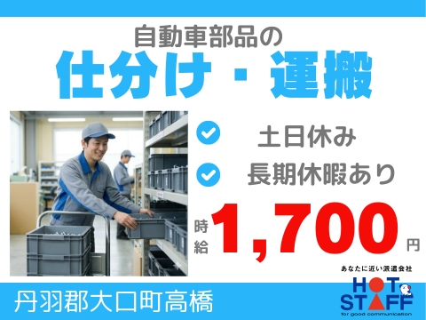 《自動車部品の入った箱を仕分け・運搬スタッフ》高時給/ニ交替専属/未経験OK/カンタン作業/土日休み